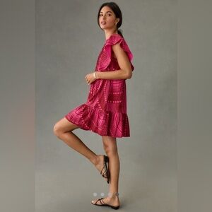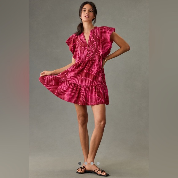 This vibrant pink mini dress features playful ruffles and a flattering silhouette, perfect for any occasion.