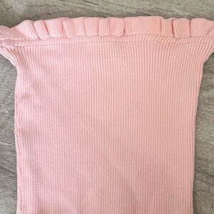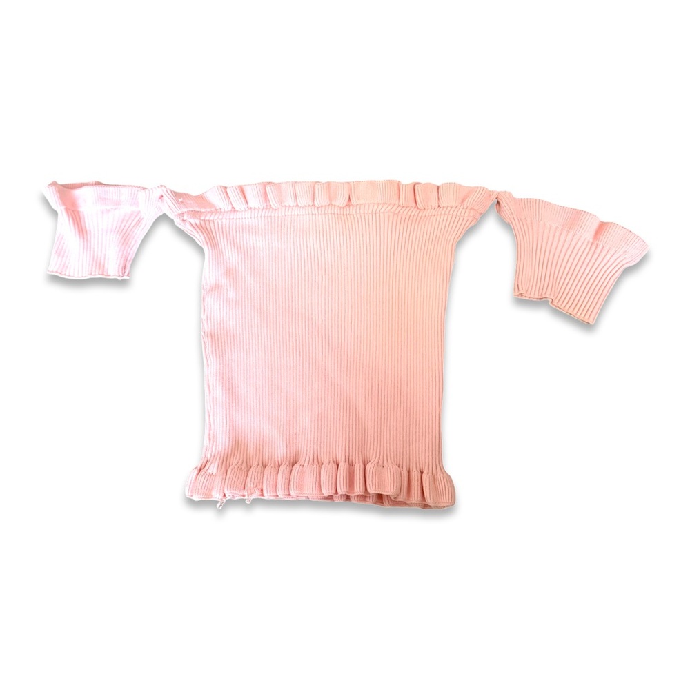 Embrace a chic look with this pink ruffled off-shoulder crop top. Perfect for casual outings or a night out, this top adds a touch of elegance to any outfit.