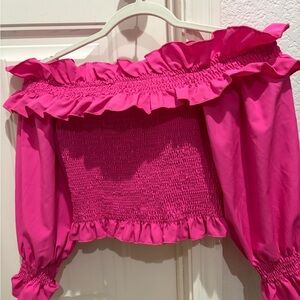 Elevate your style with this vibrant pink off-shoulder top. Featuring elegant ruffles, it's perfect for any occasion.
