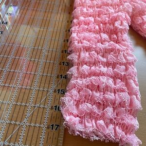New Adorable pink ruffled leg leggings perfect for adding a pop of color to any outfit. Made in the USA.