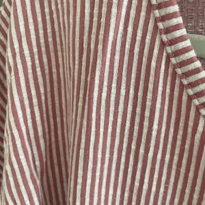 This charming pink blouse features a ribbed texture and playful ruffled short sleeves, perfect for adding a touch of elegance to your casual wardrobe. The cutout V-neck detail enhances its feminine appeal, making it an ideal choice for warm weather outings.