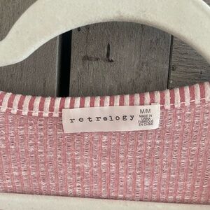 Pink Ruffled Ribbed Short Sleeve Blouse