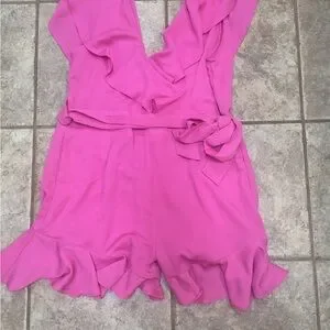 Hot pink romper with ruffled details. Very cute! Worn once