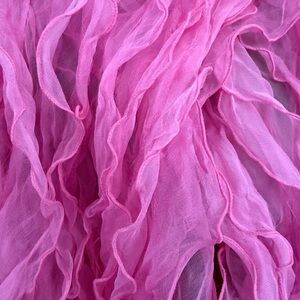 Vibrant pink ruffled scarf. Perfect for adding a pop of color.