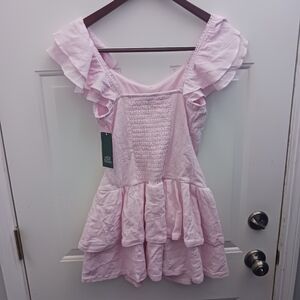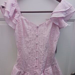 Charming pink blouse with ruffled sleeves and button details. Perfect for a stylish look.