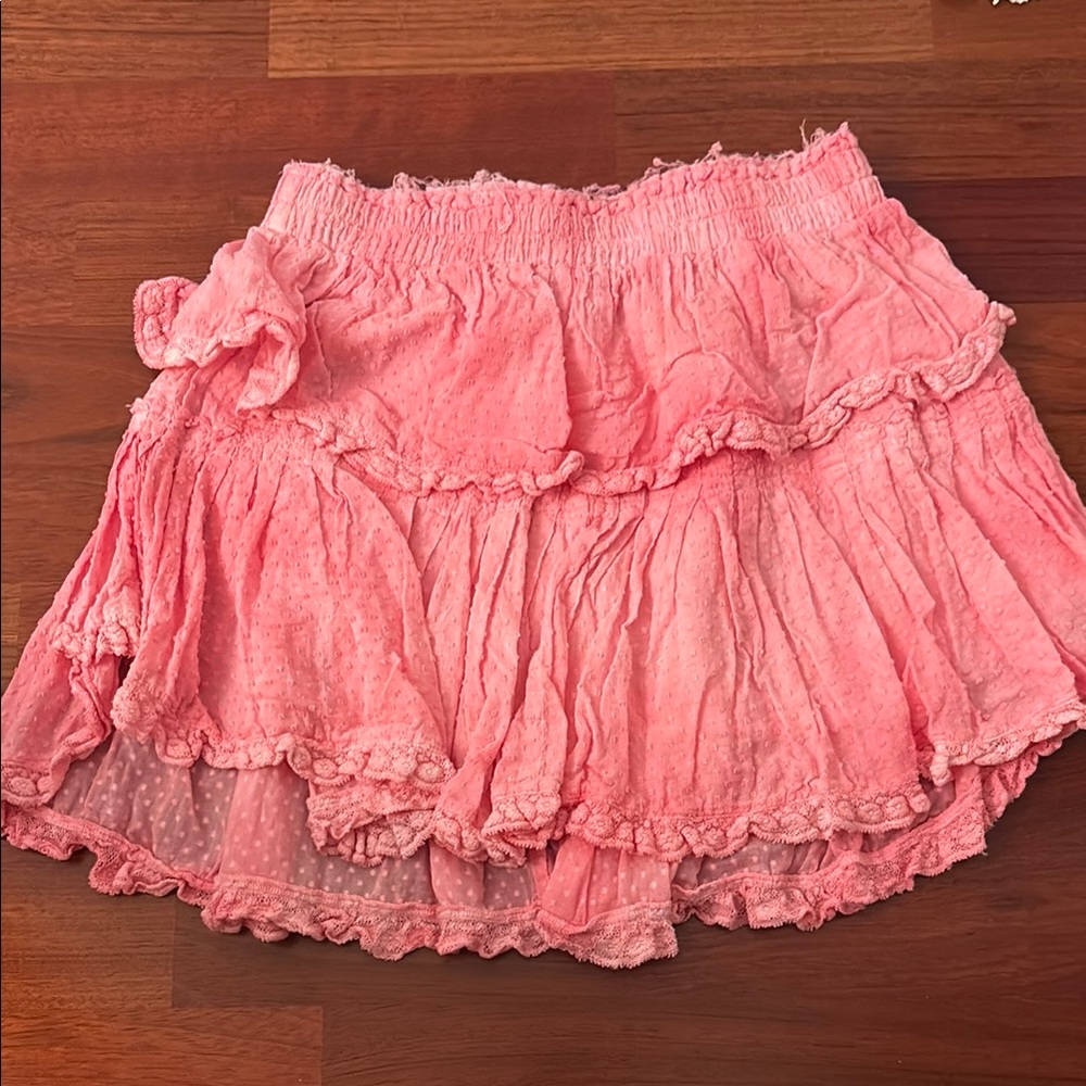 Charming pink ruffled skirt with layered design. Perfect for a playful look.
