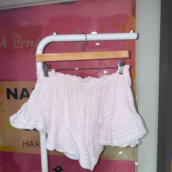 Chic pink ruffled skirt with delicate stitching. Perfect for casual outings.