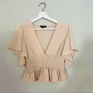 Pink Ruffled Sleeve Top. Super cute and feminine. Buttons down middle. Like new.