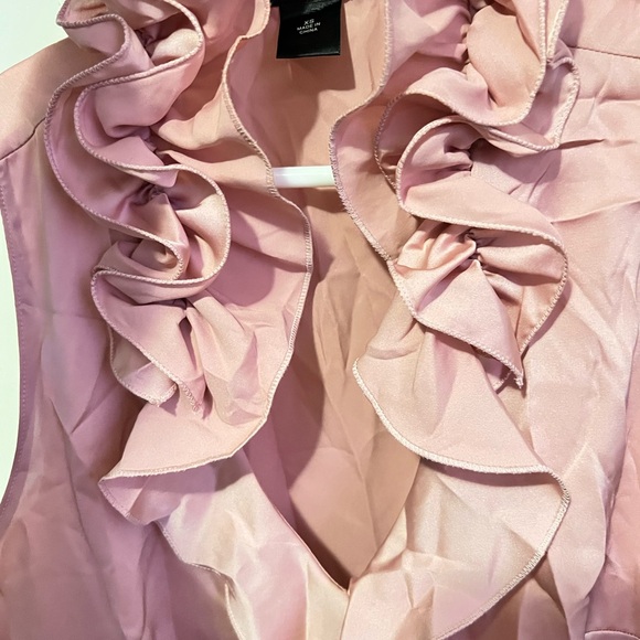 Elegant pink sleeveless blouse with ruffled neckline. Perfect for any occasion.