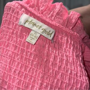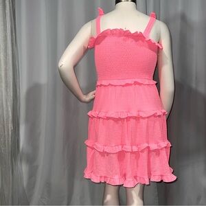 Charming pink sleeveless dress with ruffled details. Perfect for a summer outing.size xl 16 girls if you are a small in womens it would fit the material is stretchy the brand is planet gold