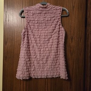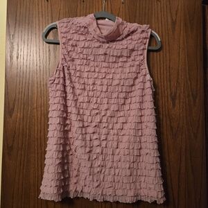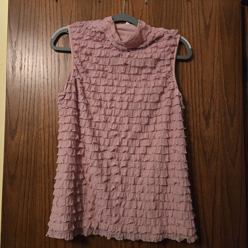 Elevate your style with this chic pink ruffled sleeveless top. Perfect for any casual outing or a day at the office. Enjoy the comfort and elegance it brings to your wardrobe.