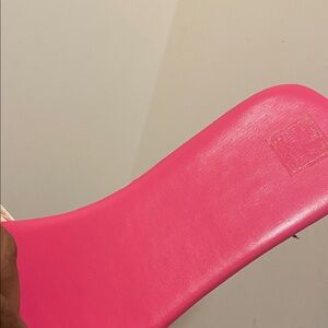 Vibrant pink slide sandals with ruffled detail. Perfect for a bold look. SIZE 42