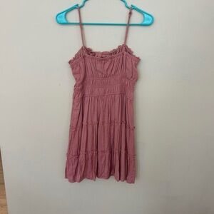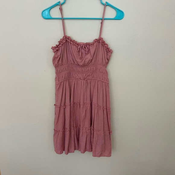 Chic pink dress with ruffled details and spaghetti straps. Perfect for casual outings.