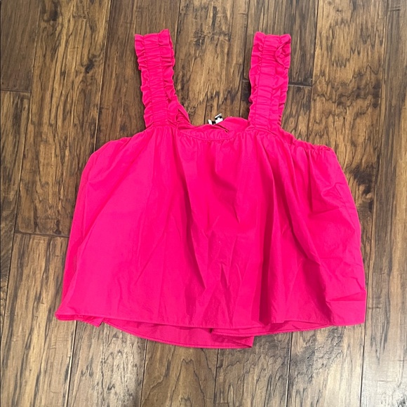 Vibrant pink top with ruffled straps. Perfect for a casual look.