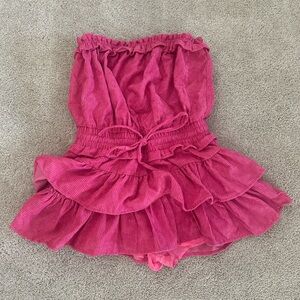 Pink Ruffled Strapless Romper