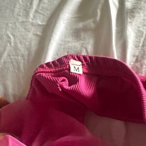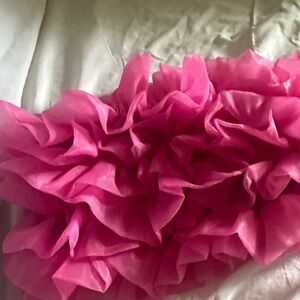 Vibrant pink strapless top with ruffled design. Perfect for a bold statement look.