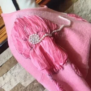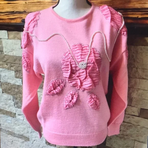 Stay cozy and stylish with this charming pink ruffled sweater. Perfect for adding a touch of elegance to your wardrobe.
