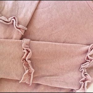 This is a light pink/light purple-ish shirt, can be worn as a sweater with ruffles on the sleeves.