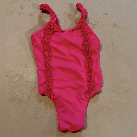 Stylish pink swimsuit with ruffled details Very cute Small mark on the back (see second photo)