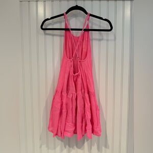 Pink Ruffled Tiered Halter Sundress