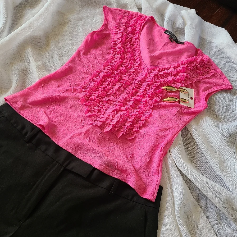Brighten up your wardrobe with this vibrant pink ruffled top. Perfect for any occasion, this top offers both style and comfort.