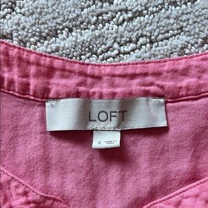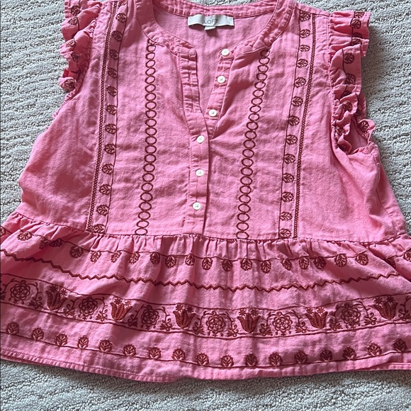 Adorable pink ruffled top, perfect for any occasion. Features charming button details and a playful design. Good condition, no tears or stains.