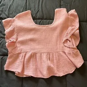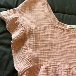 Chic pink ruffled top with a textured design. Perfect for casual outings.