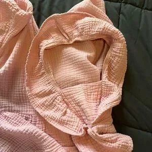 Worn once. Cropped. I am unsure of the exact size, but I usually buy a large.