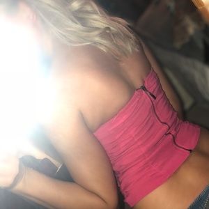 Pink ruffled tube top, zips up in the back, barely worn good condition!