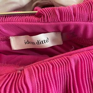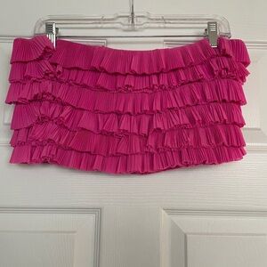 Add a pop of color to your wardrobe with this vibrant pink ruffled tube top. Perfect for any occasion.