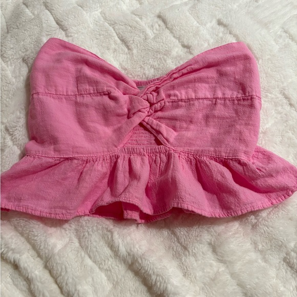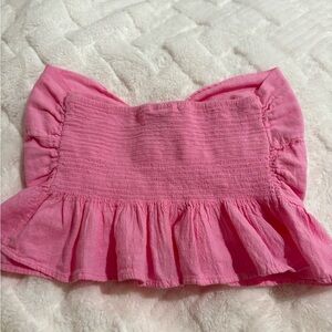 Adorable pink ruffled tube top, very comfortable has cute cutout in front with stretchy back. Never worn.