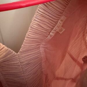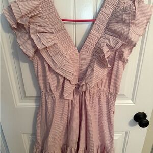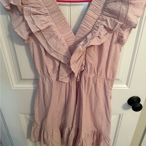 Chic purple/pink dress with ruffled details. Features a flattering V-neck. Perfect for any occasion. Fits like a medium.