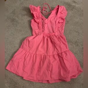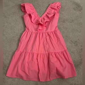 Pink Ruffled V-Neck Dress