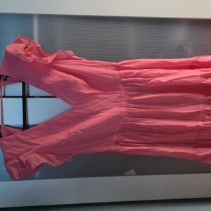 Chic and stylish pink dress with ruffled sleeves and a flattering V-neckline. Perfect for any occasion.