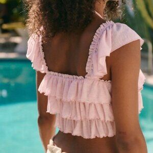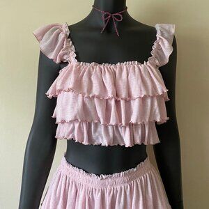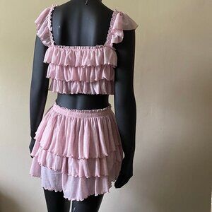 Embrace a playful look with these pink ruffled women's shorts. Perfect for a casual day out.