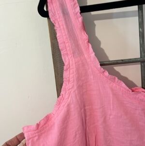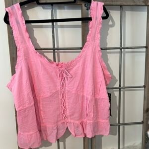 Chic and stylish pink ruffled crop tank top perfect for any occasion. Pit to pit 25", shoulder to hem 24". Enjoy a comfortable fit with a touch of elegance.