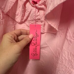 Elegant pink top with ruffled neckline, perfect for any occasion. Add a touch of style to your wardrobe.
