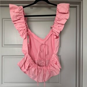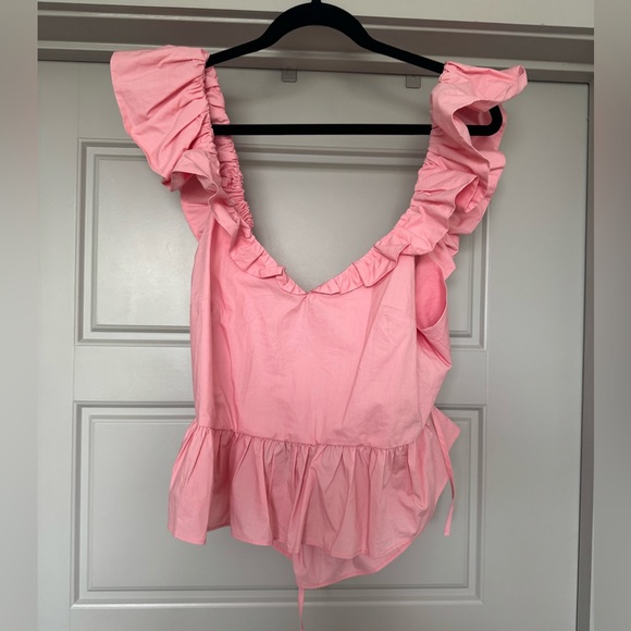 Elevate your style with this chic pink ruffled top. Perfect for any occasion, this top adds a touch of elegance to your wardrobe.