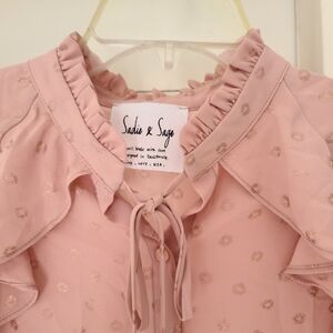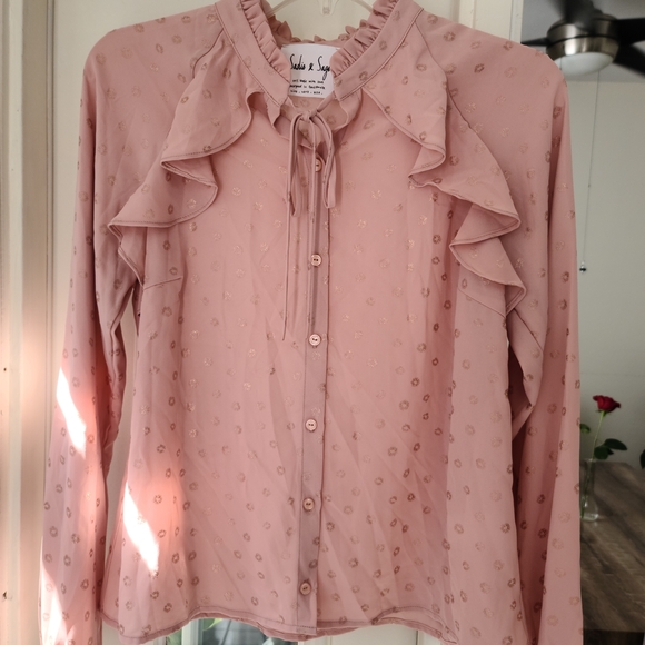 Elegant pink ruffled top with a delicate design, perfect for any occasion.