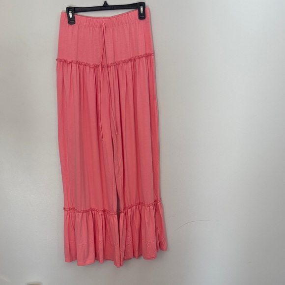 Elegant pink ruffled pants perfect for any occasion. Add a pop of color to your wardrobe.