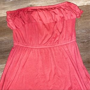 Worn lightly strapless skirt is short in front and long in back