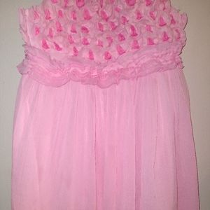 This gorgeous pink ruffled dress is perfect for her school dance. Empire waist. Flowy pink skirt bottom. This is a dress she will dance in! By Beetlejuice London in size 7. Attached underslip.