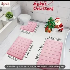 Ultra-Soft Non-Slip Plush Memory Foam Bath Mat set (3 pcs)- Absorbent Bath Rug & Carpet Combo for Shower, Bathtub, and Laundry Room - Perfect home Decor Gift Set (gently used)