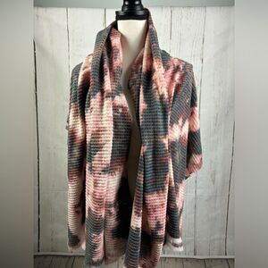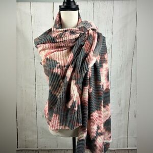 Pink Rust Gray Tie Dye Wrap Warmer Scarf Ribbed Raw Edge