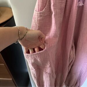 Chic and cozy pink joggers. Features drawstring waist and ankle ties. Perfect for casual outings.