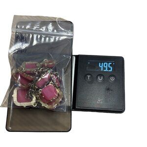 Pink Salmon Stone And Goldtone Necklace Statement Fun Color pop