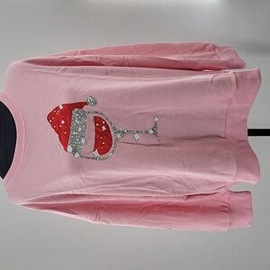 Cozy pink sweatshirt featuring a festive Santa wine glass design. Perfect for holiday gatherings. New in package!