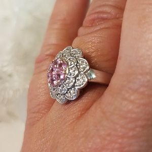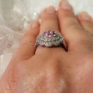This is an absolutely beautiful sterling silver ring featuring awesome pink sapphire stones and white zircon. White Zircon is a natural gemstone and is not to be confused with cubic zirconias. This beauty of a ring is a size 6 and would look fabulous with anything you would want to wear it with!