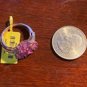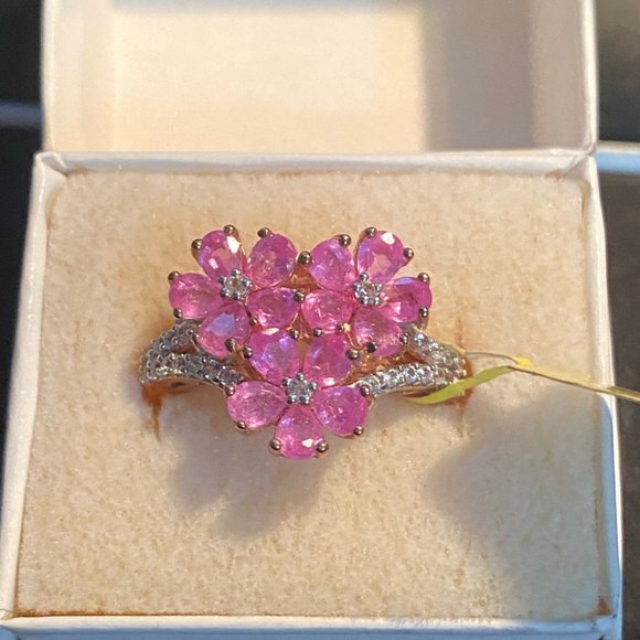 Pink Sapphire and Diamonds Floral Silver Ring, Size 8