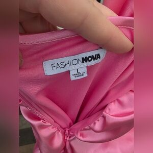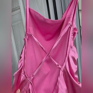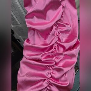 pink satin dress with scrunching design.